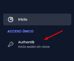 Debes dirigirte a la interfaz ubicada en la parte lateral izquierda del dashboard de cliente de Verifik; Selecciona la opción de "Authentik" o inicia sesión sin clave