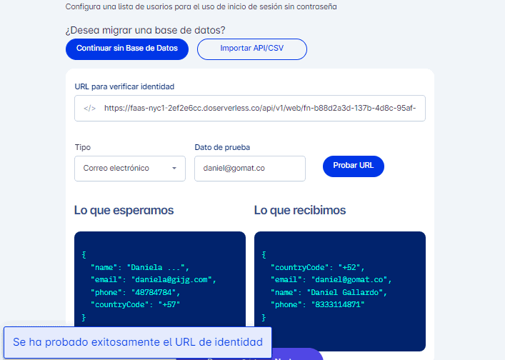 Allí podrás probar y guardar el enlace API que creaste con la información básica de los clientes que iniciaran sesión en tu proyecto: